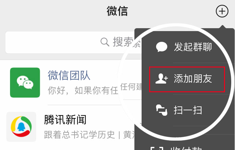 打開微信,點(diǎn)擊右上角“+”,點(diǎn)擊“添加朋友”,粘貼微信號即可